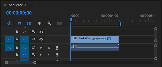 - basketball_player.mp4를 타임라인에 V1 배치