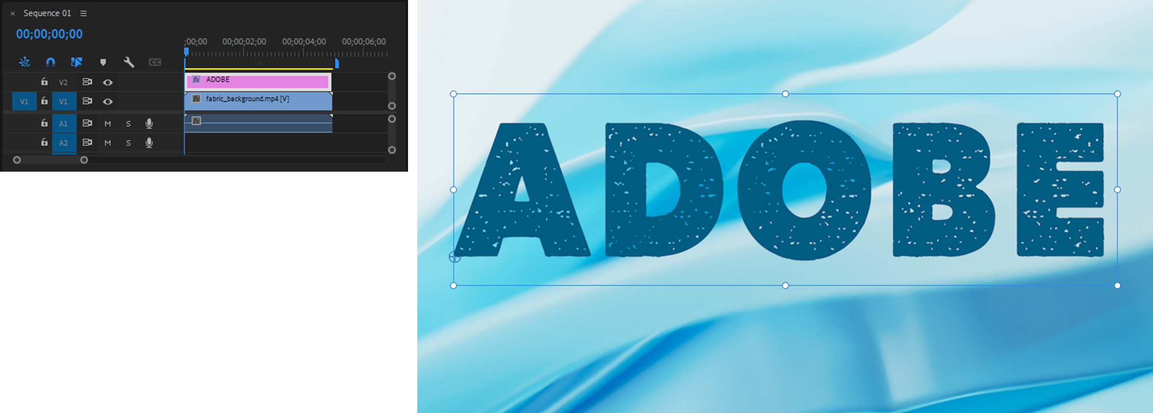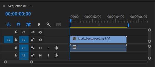 - frabric_backgroung.mp4를 타임라인의 V1 트랙에 배치