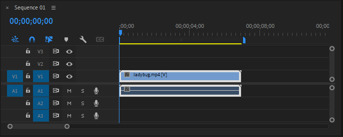 - ladybug.mp4를 타임라인의 V1 트랙에 배치