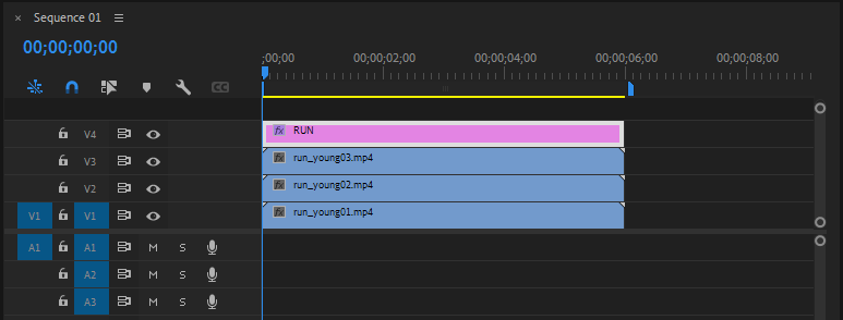 - run_young01.mp4, run_young02.mp4, run_young03.mp4를 V1, V2, V3에 배치