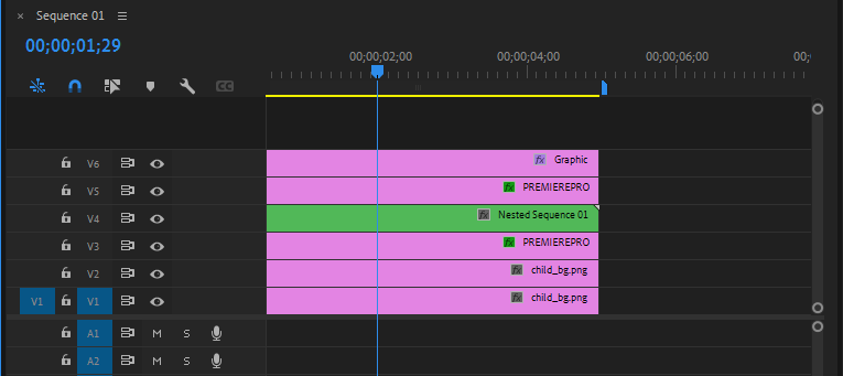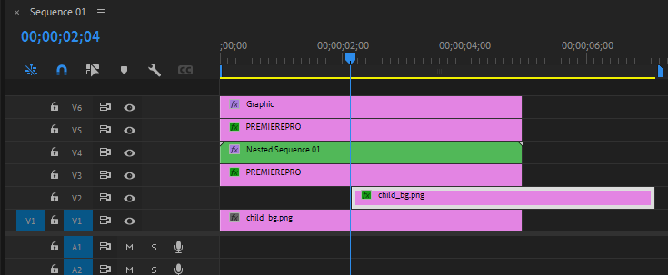 - V4 트랙의 클립을 선택한 후 우측 마우스 버튼을 클릭하여 Nest..메뉴 선택 => Nest Sequence01