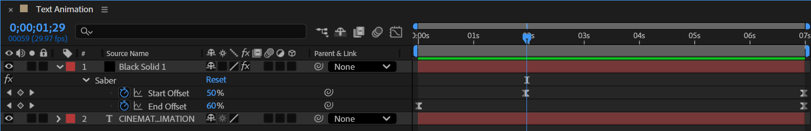 - Start Offset의 1번째 키프레임을 01:29로 이동